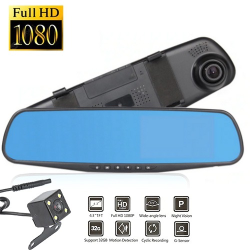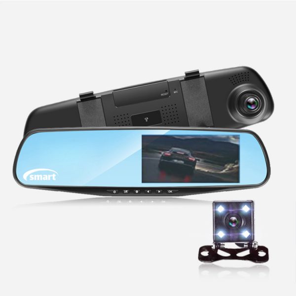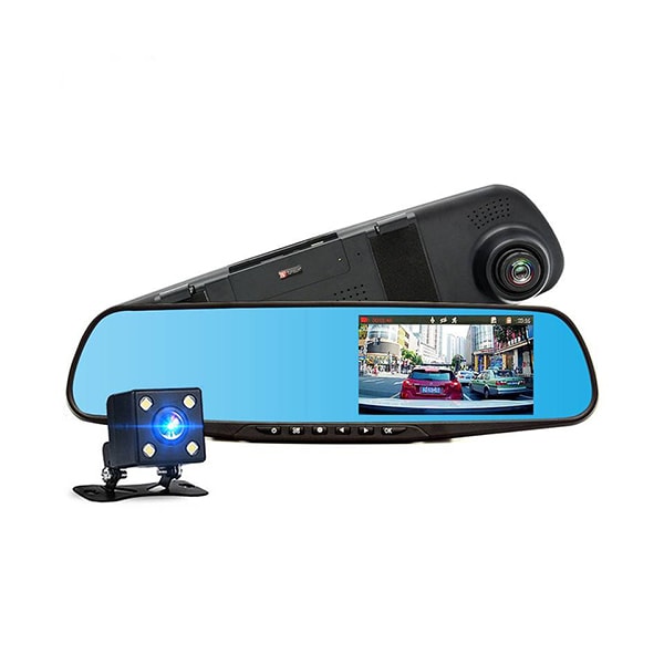 همان طور که گفتیم این مدل آینه دارای دو دوربین می باشد. یکی از دوربین ها پشت خودرو نصب می شود تا بتواند تصاویر پشت خودرو را ضبط کند. دوربین دیگر پشت آینه قرار دارد که از جلوی خودرو فیلمبرداری می کند. این آینه دارای قابلیت اتصال رم یا کارت حافظه می باشد. شما می توانید کارت حافظه خود را برای ضبط فیلم به آینه متصل کنید تا فیلم های ضبط شده بر روی آن ذخیره شود. هم چنین امکان مشاهده همزمان هر دو تصویر پشت و جلوی خودرو روی مانیتور آینه امکان پذیر است.